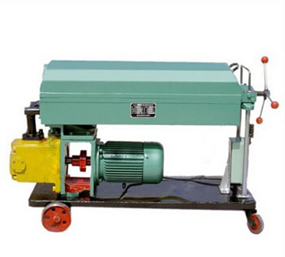 该机由过滤床、油泵和粗过滤器等元件组成。滤板和滤框间衬有作为过滤介质的滤纸或滤布,凭借压紧装置的压力将滤板和滤框固定形成一个单独的过滤室,被压紧在滤板和滤框之间的滤纸或滤布起过滤作用。